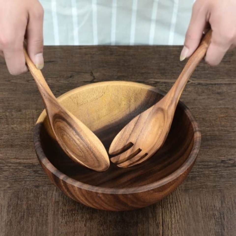 ชุดครัวไม้ธรรมชาติเป็นมิตรกับสิ่งแวดล้อมชุดตะหลิวทอดไม้อะคาเซีย2ชิ้นสำหรับทำอาหารขายส่ง
