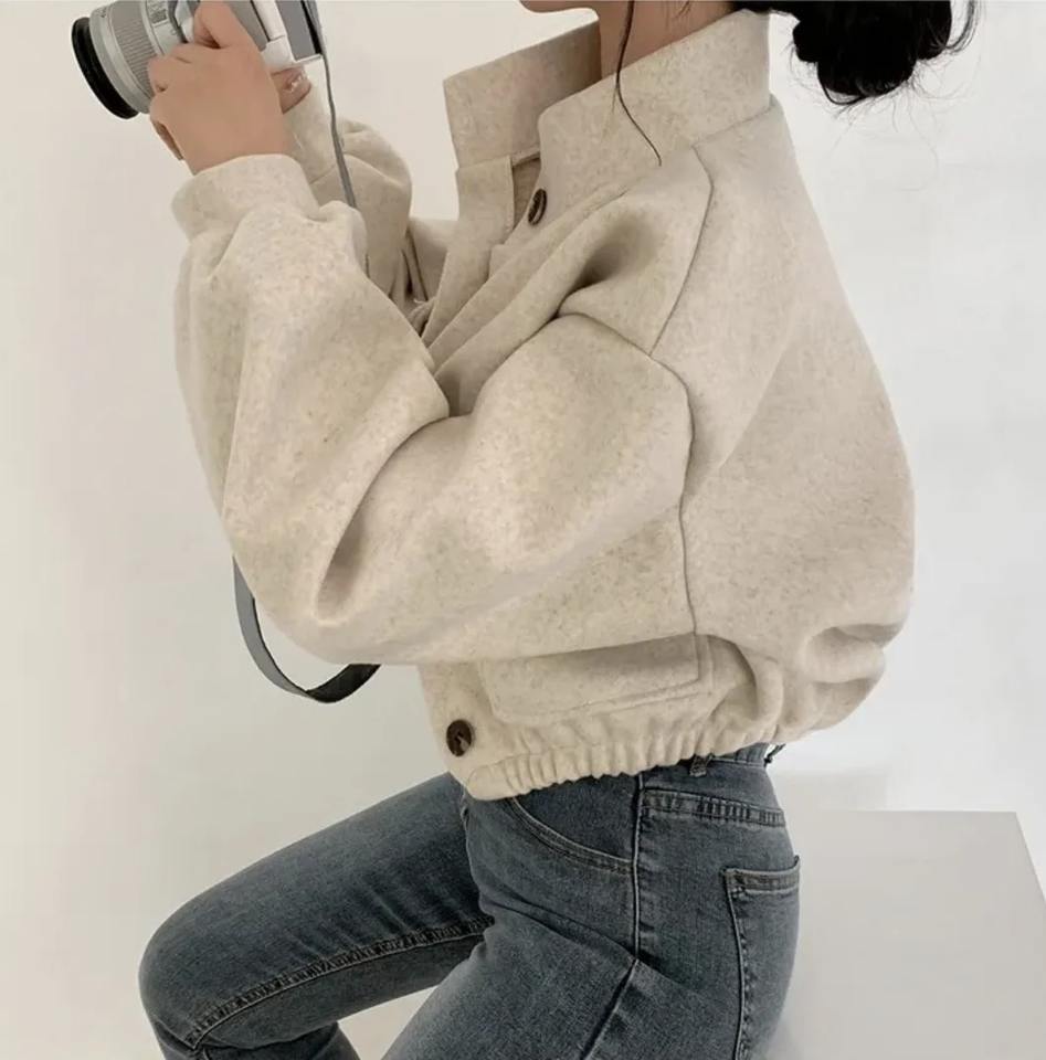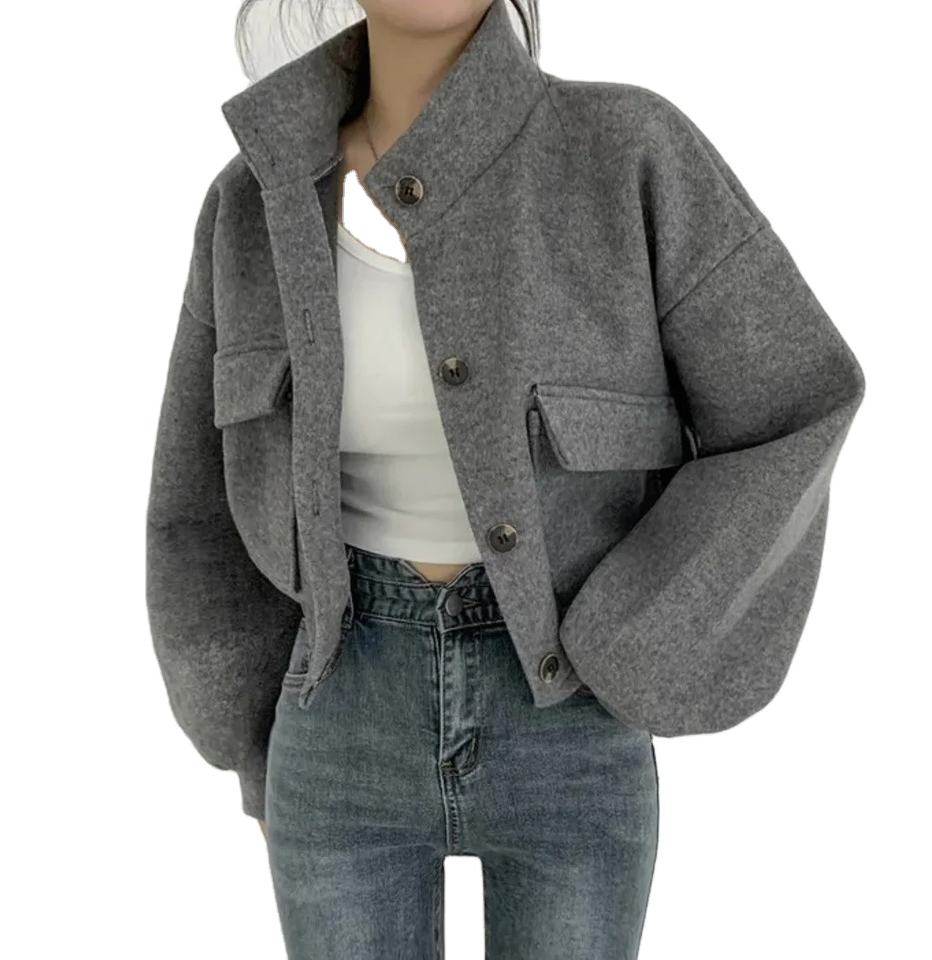 เสื้อโค้ทผ้าวูลแขนสั้นทรงหลวมกว้างสำหรับผู้หญิงแฟชั่นฤดูใบไม้ร่วงฤดูหนาว