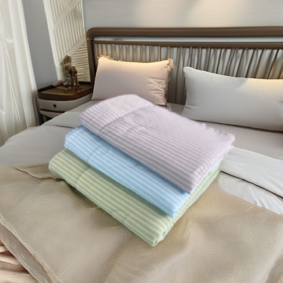 สุดเท่ผ้าห่มถักสีเทาสีฟ้าสำหรับนอนฤดูร้อนผ้าห่มสำหรับใช้ในบ้านที่นอนระบายอากาศได้อย่างเรียบเนียน