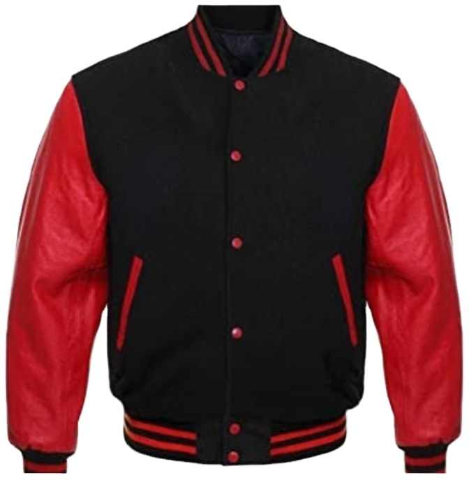 เสื้อแจ็กเก็ตเบสบอลสีแดงของผู้ชาย,เสื้อแจ็กเก็ตเบสบอลแขนสั้นทรงสลิมสีดำแฟชั่นฤดูใบไม้ร่วง