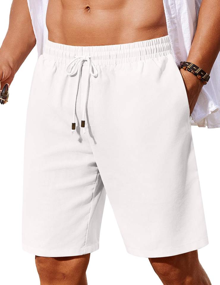 กางเกงขาสั้นผ้าโพลีเอสเตอร์/ ผ้าฝ้ายผู้ชายเอวยางยืดมีเชือกผูกทรงหลวมระบายอากาศได้ดีมีกระเป๋า