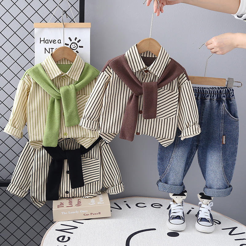 ชุดเสื้อผ้าลายทางมีสไตล์สุดเท่สำหรับเด็กผู้ชายอายุ1ขวบเสื้อผ้าพันคอสำหรับฤดูใบไม้ร่วงฤดูใบไม้ผลิ