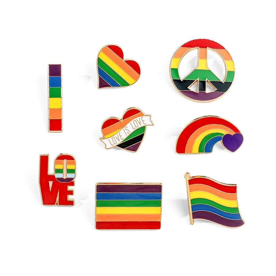 เข็มกลัดติดป้ายธง LGBTQ ทันสมัยเข็มกลัดหัวใจเกย์เลสเบี้ยนหมุดสีรุ้ง