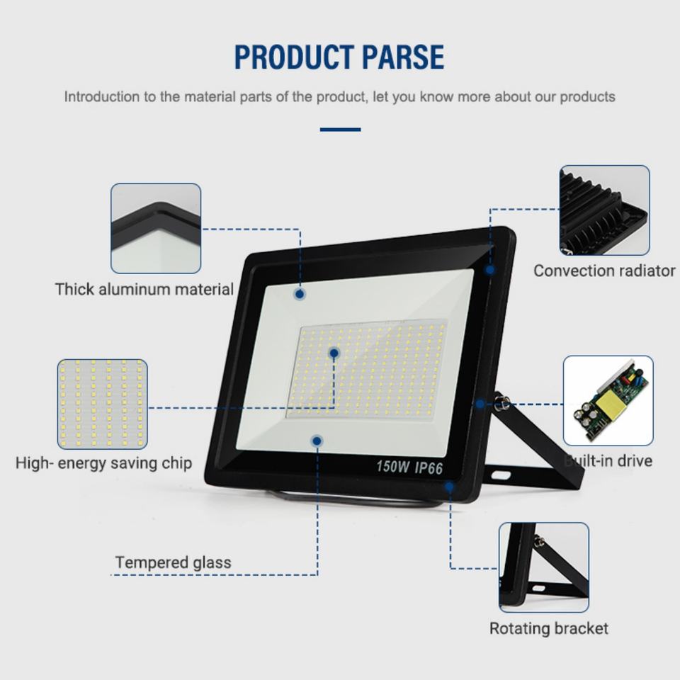 โคมไฟ LED กลางแจ้งสีขาวเท่ฟลัดไลท์อลูมิเนียมกันน้ำ Ip66 10W 20W 30W 50W 100W 150W 200W SMD