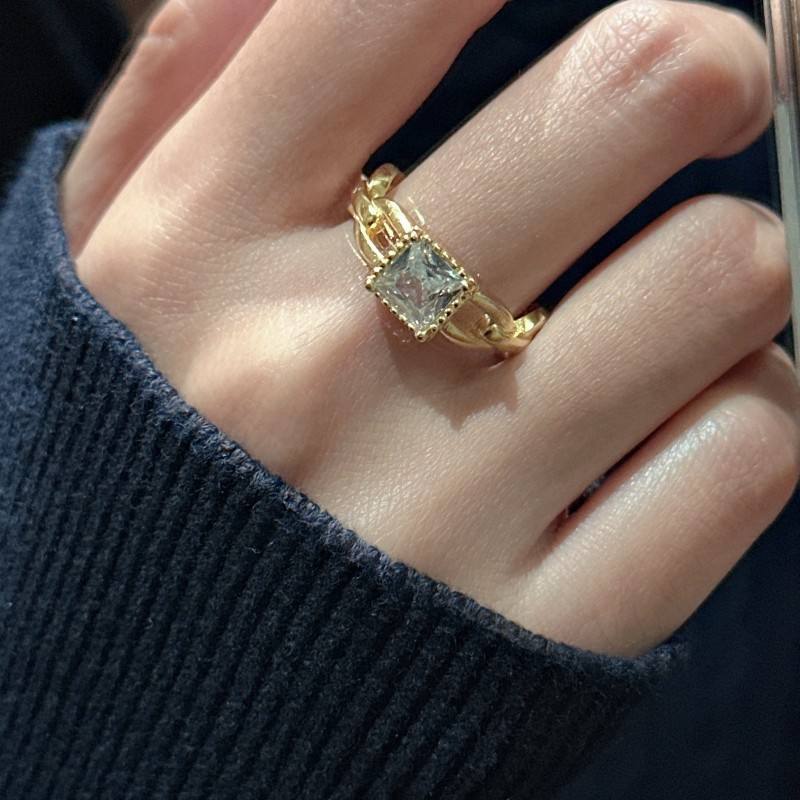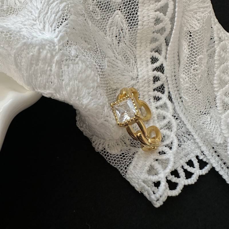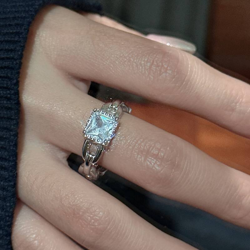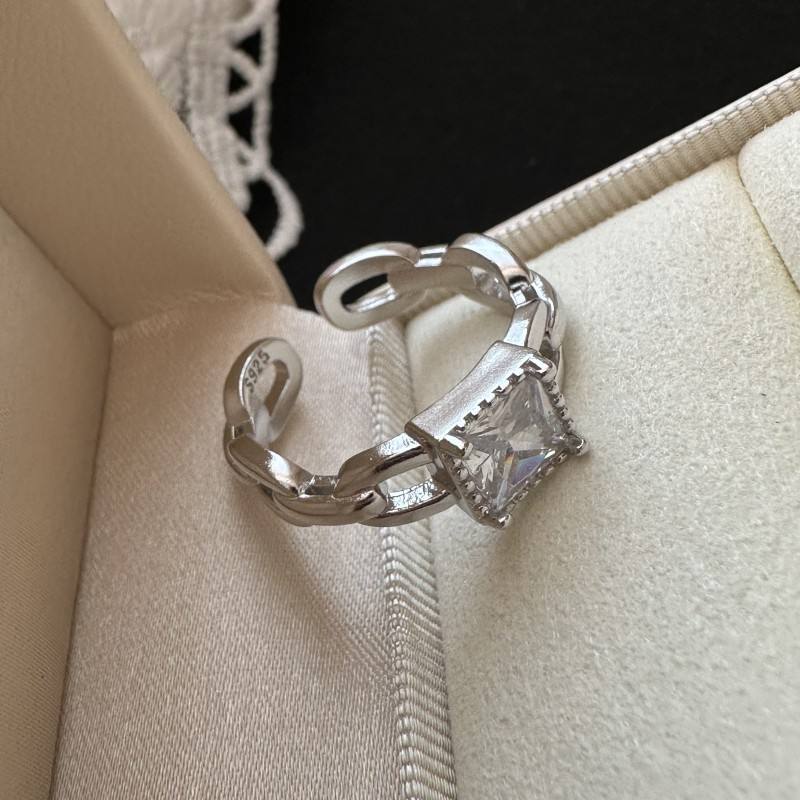 แหวนเงินแท้ S925 ดีไซน์หรูหรา ทรงเปิด ประดับเพชรทรงสี่เหลี่ยม ดีไซน์เฉพาะตัว สไตล์ฝรั่งเศสย้อนยุค โซ่กลวง ประดับเพชรทรงรี