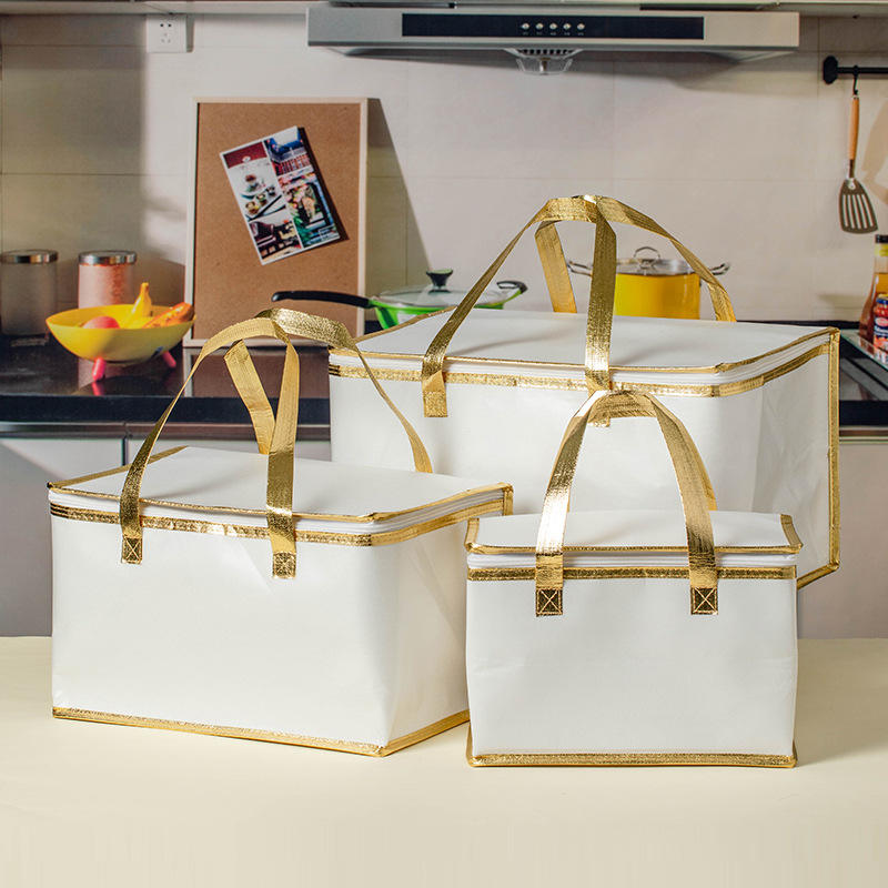 กระเป๋าเก็บความเย็นแบบหุ้มฉนวนผ้าฝ้ายทรงสี่เหลี่ยมขนาดมาตรฐานสำหรับเก็บอาหารสำหรับใช้ในสำนักงานปิกนิก