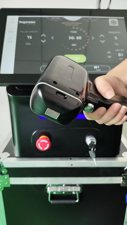 808nm เลเซอร์กำจัดขนเซมิคอนดักเตอร์แบบ3ความยาวคลื่นหัวระบายความร้อนแบบ755nm