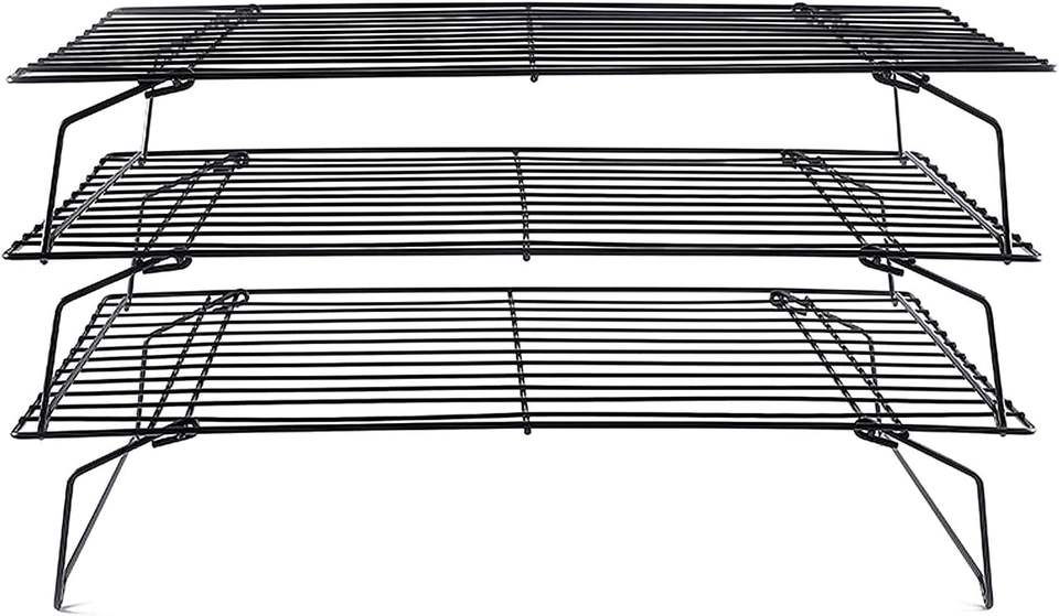 ตะแกรงระบายความร้อนชั้นวางสแตนเลส3ชั้นสำหรับอบอาหารแบบวางซ้อนกันได้ชั้นวางของเย็นสำหรับปิ้งย่างให้เย็นพับได้และหนัก