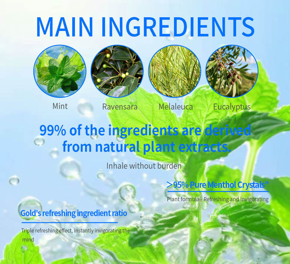 peppermint, cypress, geranium, ginger rootส่วนผสมหลัก