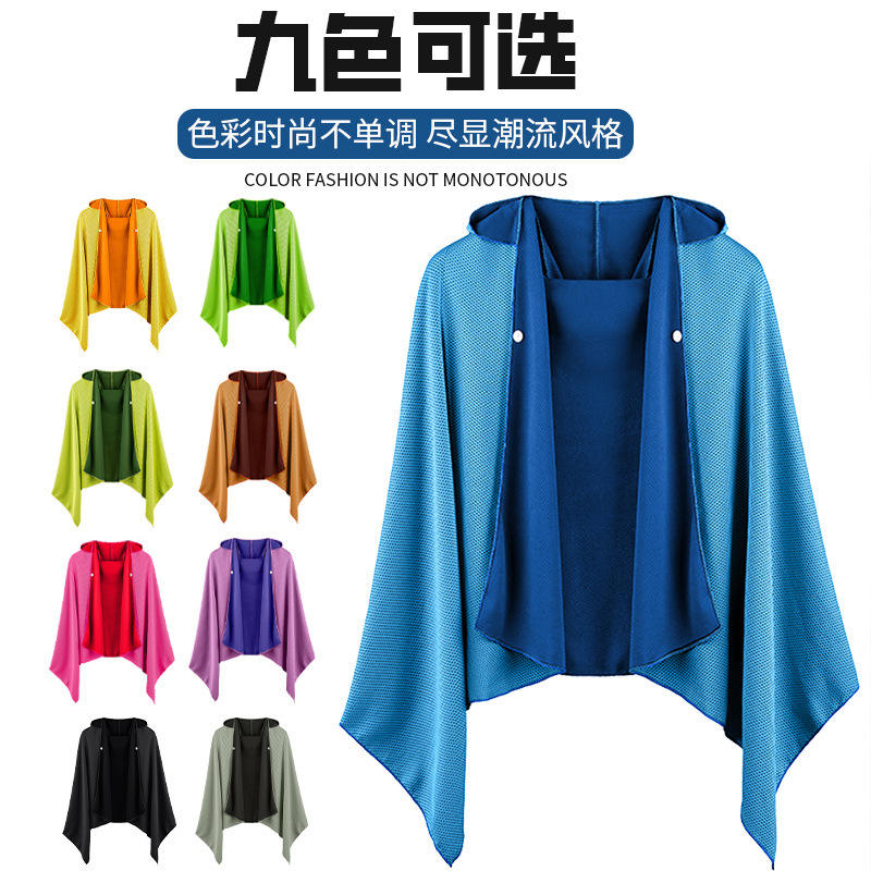 ผ้าคลุมกันแดดแบบเย็น ผ้าขนหนูชายหาดแห้งเร็ว ผ้าคลุมอาบน้ำแบบมีฮู้ดสำหรับกีฬากลางแจ้ง เดินป่า ใช้บนชายหาด