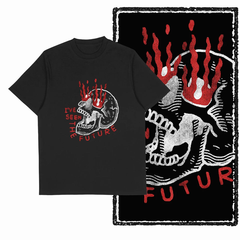 Coolmind เสื้อยืดผู้ชายผ้าฝ้ายพิมพ์ลายกะโหลกสุดเท่เสื้อยืดผู้ชายทรงหลวมขนาดใหญ่เสื้อยืดลายกราฟิกกะโหลกสำหรับผู้ชายเสื้อยืด