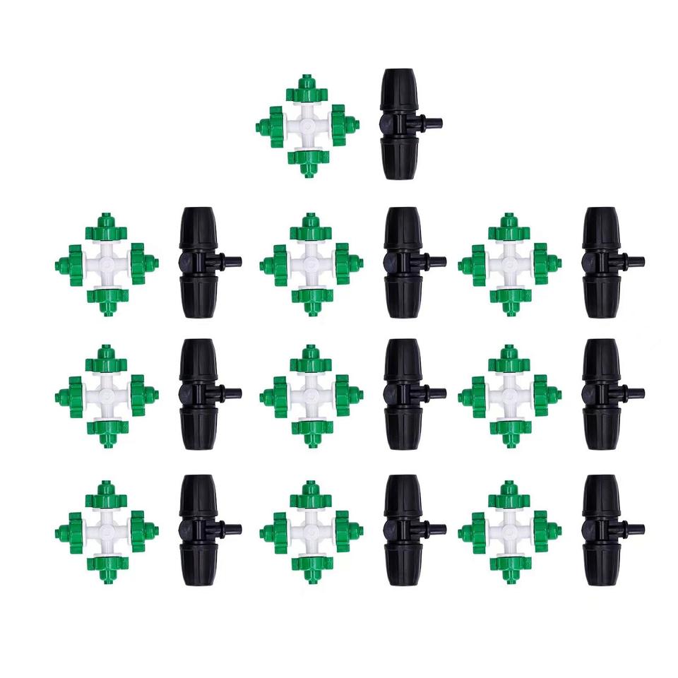 หัวฉีดไมโครสปริงเกอร์รูปกากบาทคูลเน็ต 1/4 นิ้ว แบบฉีดพ่นคงที่ สำหรับการชลประทานในโรงเรือนเพาะปลูกพืชสวน