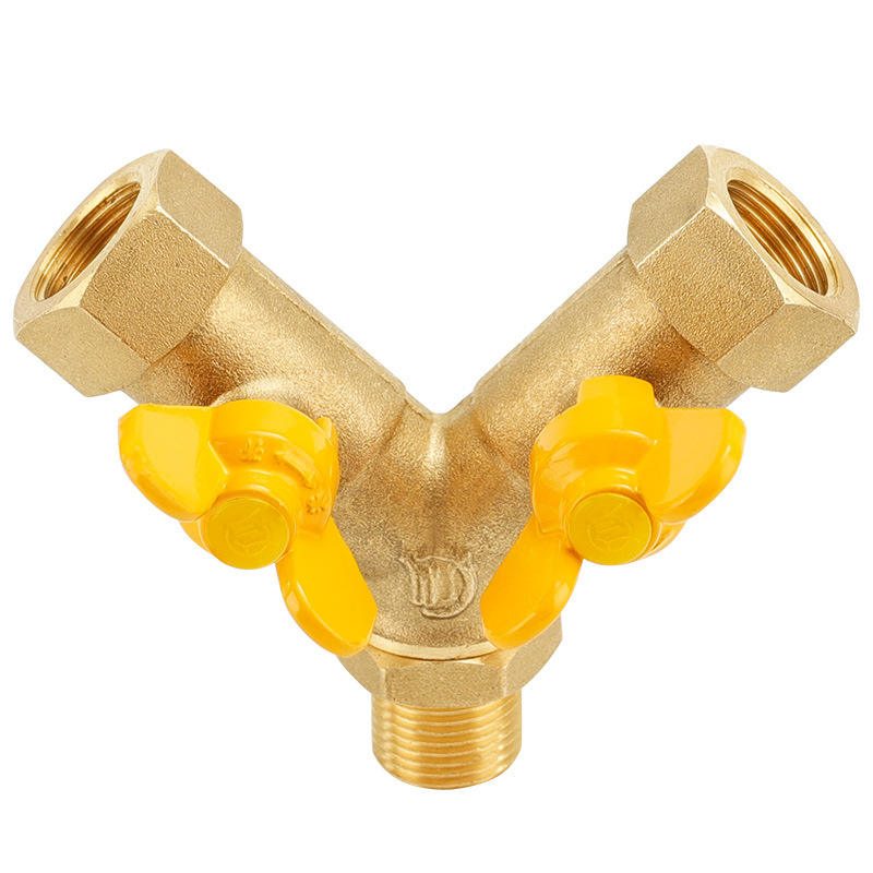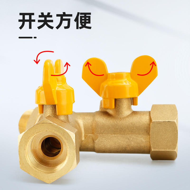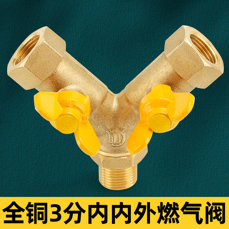 วาล์วแก๊สทองแดงแบบ 3 ทาง ชนิดเกลียวใน-เกลียวนอก สำหรับใช้ในครัวเรือน สวิตช์เชื่อมต่อท่อ 1 ต่อ 2 สำหรับก๊าซธรรมชาติเหลว