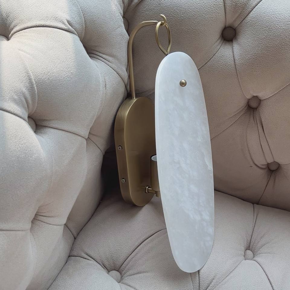 โคมไฟติดผนังทองแดงอะลาบาสเตอร์สไตล์โมเดิร์นสุดหรูสำหรับโรงแรมและบ้าน ไฟ LED ตกแต่งห้องนั่งเล่นภายในบ้าน