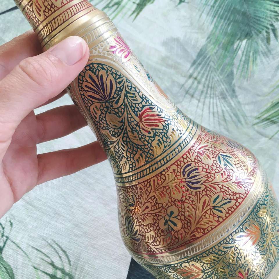 แจกันดอกไม้ทองเหลืองโบราณโบราณแจกันแจกันดอกไม้โกศวินเทจสำหรับระเบียงและสวนตกแต่งโต๊ะแจกัน