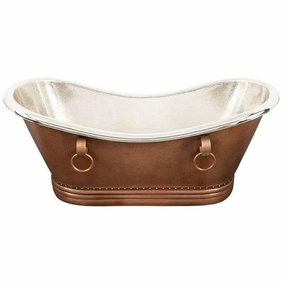 อ่างอาบน้ำทำจากทองแดงสไตล์โบราณอ่างอาบน้ำทรงตรงแบบยืนพื้นผิวแข็งปรับแต่งได้อ่างอาบน้ำโลหะขนาดใหญ่