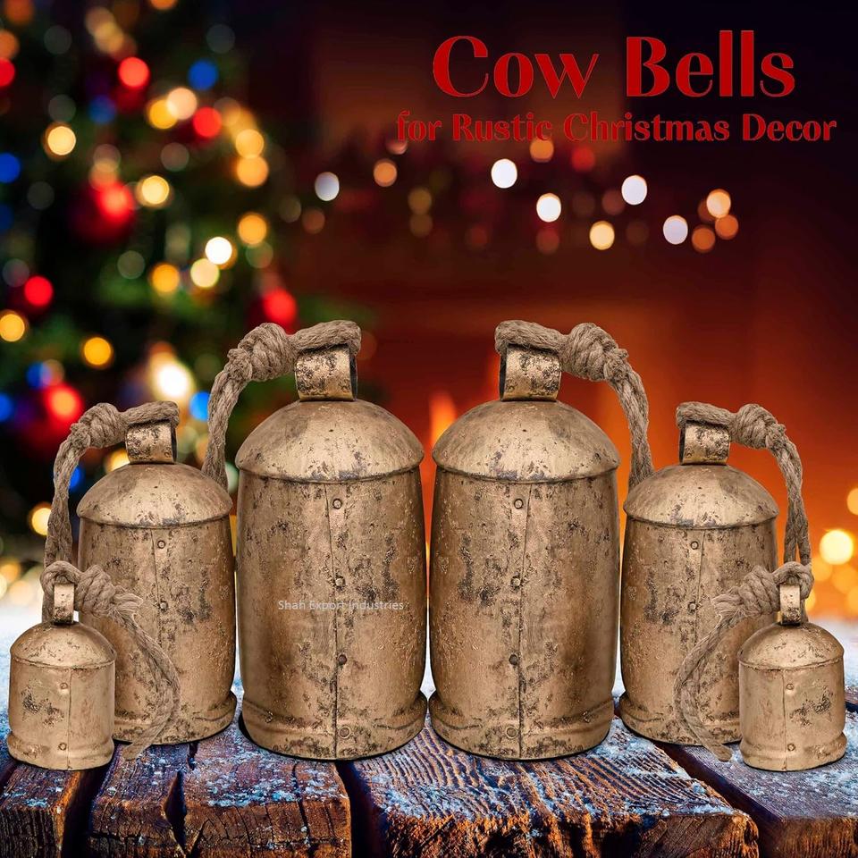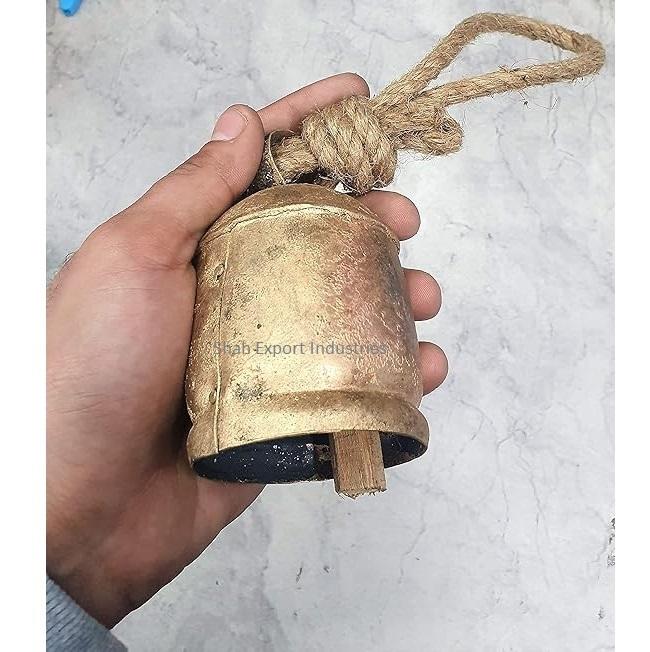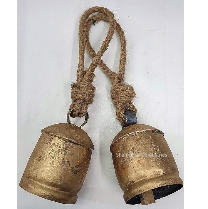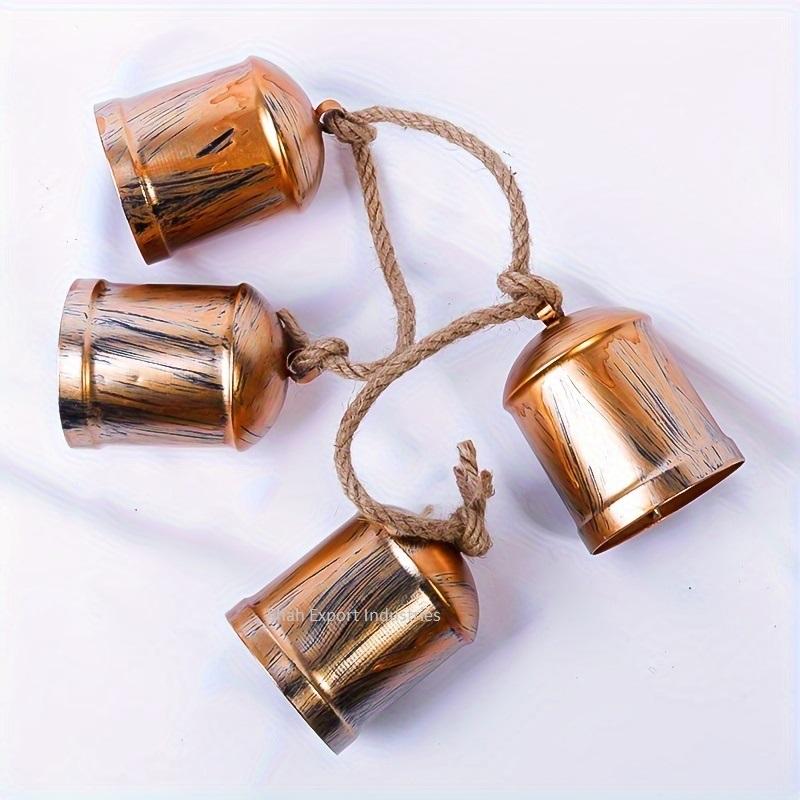 Copper Antique Metal Vintage Cow Bells Cluster Handmade Jute Rope Hanging Bell Outdoor Decorative Lucky Cow Bells