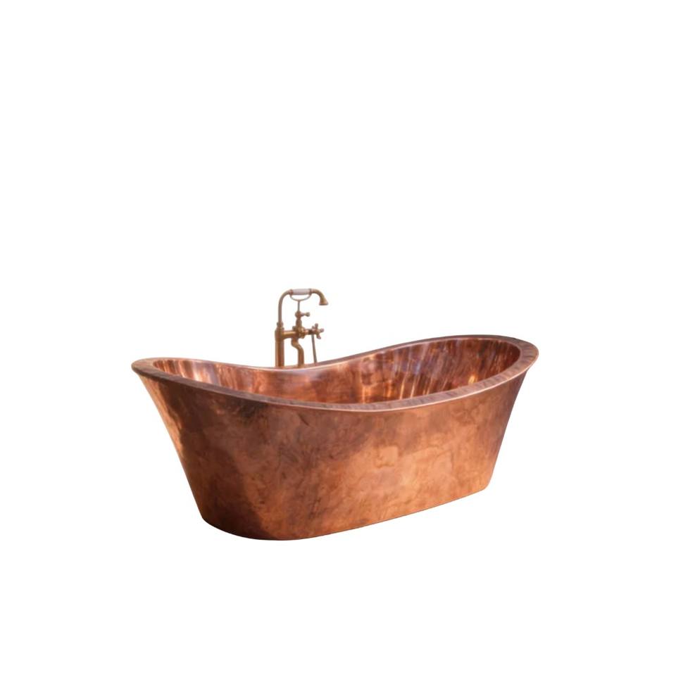 อ่างอาบน้ำทองแดงทำมือ อ่างแช่ตัวแบบสองช่อง ด้านนอกสีขาว ขอบขัดเงา ทันสมัย เป็นมิตรกับสิ่งแวดล้อม เหมาะสำหรับโรงแรมและบ้าน