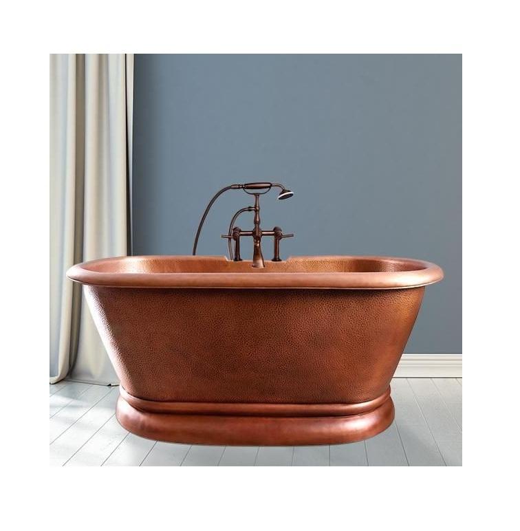 อ่างอาบน้ำทองแดงพร้อมที่ระบายน้ำสำหรับห้องน้ำหรือวิลล่าขัดเงาดีไซน์แบบดั้งเดิม