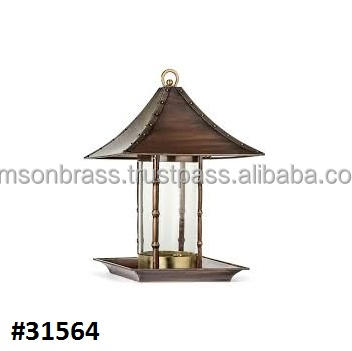 เครื่องป้อนนกทองแดงพร้อมกระจกตกแต่ง