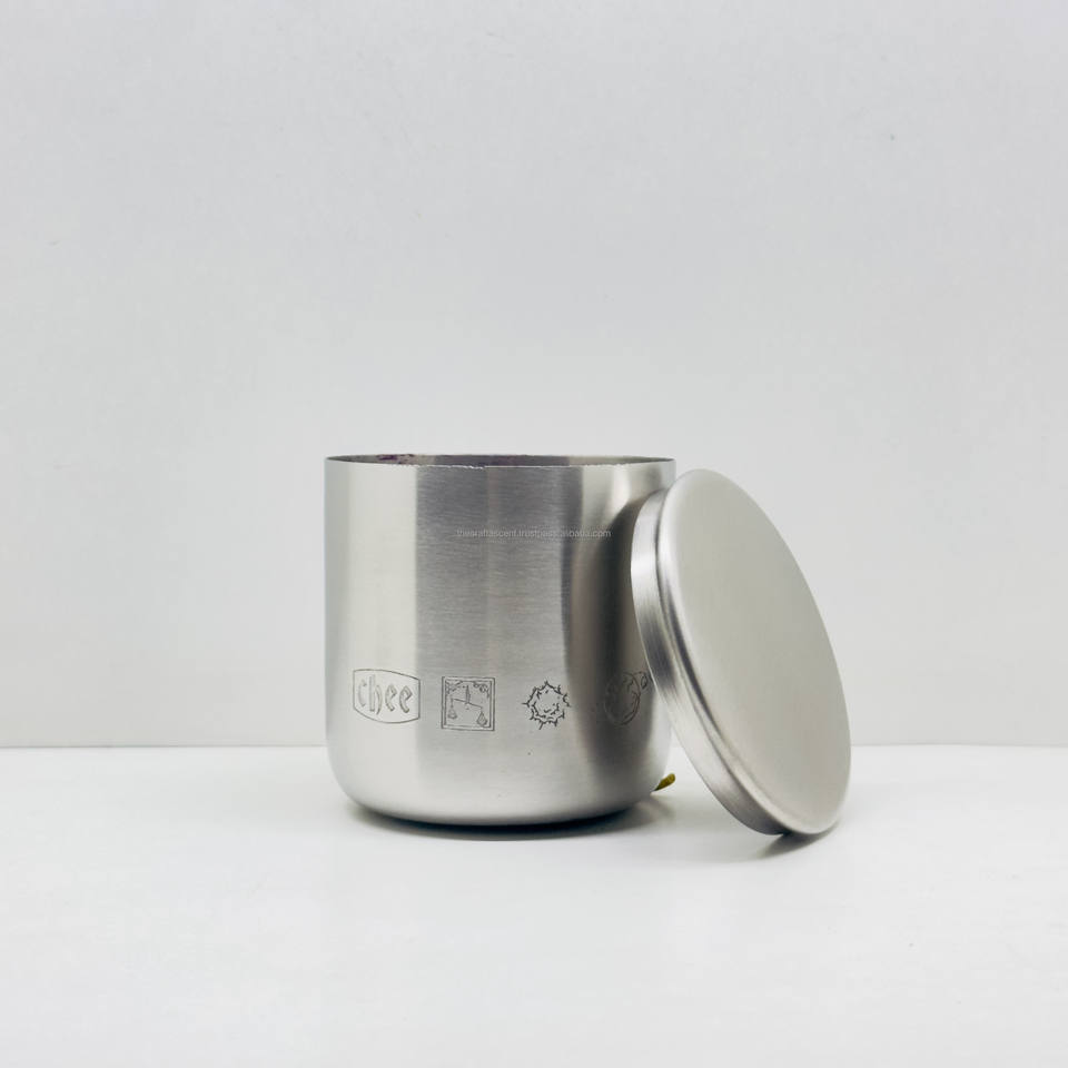 ฝาปิดขวดเทียนเปล่าทำจากเหล็กกล้าไร้สนิมขัดเงา ผลิตด้วยมือ เป็นมิตรกับสิ่งแวดล้อม ทนทาน รับทำโลโก้ตามสั่ง ขายส่ง