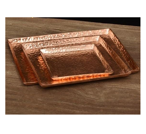 ถาดเสิร์ฟกาแฟทำจากทองแดง3ชิ้นขนาดแตกต่างกันถาดรองแก้วกาแฟทรงสี่เหลี่ยม