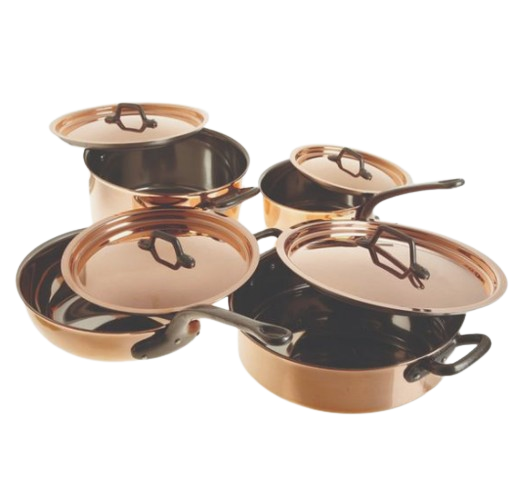 ชุดเครื่องครัวทองแดงเคลือบผิว ทำด้วยมือ เป็นมิตรกับสิ่งแวดล้อม พร้อมด้ามจับโลหะ สำหรับใช้ในบ้าน ร้านอาหาร ครัว ขายส่ง