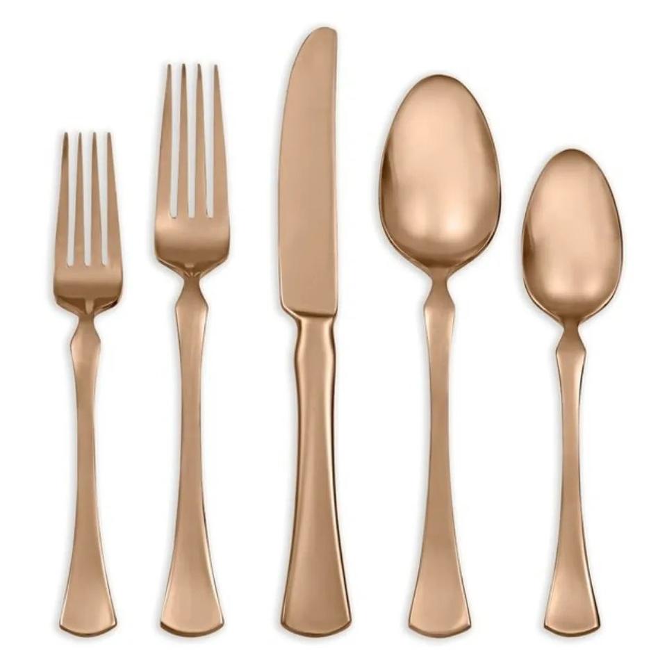 ชุดเครื่องใช้บนโต๊ะอาหารโลหะเคลือบทองแดงมีด้ามจับแบบเรียบง่ายสำหรับร้านอาหารและโรงแรม