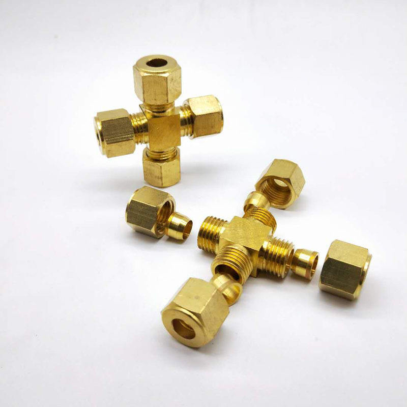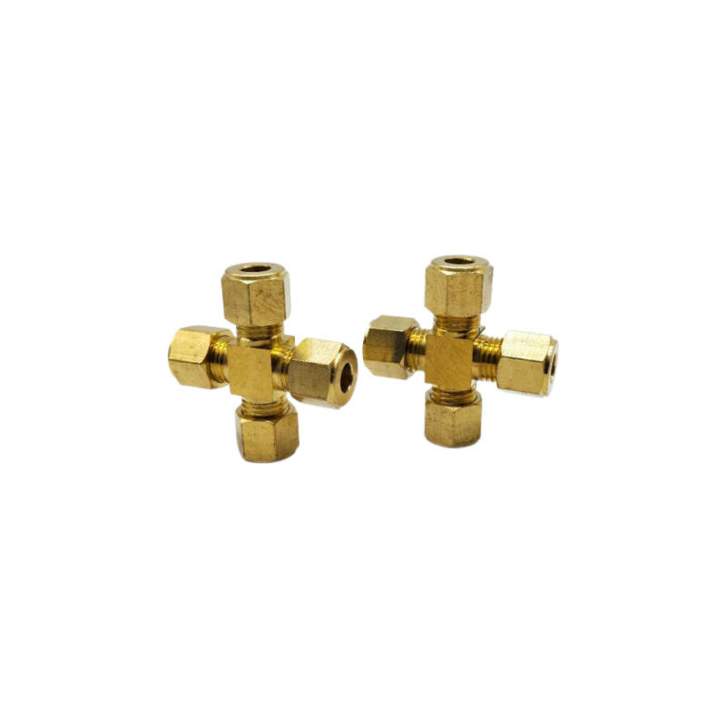 ข้อต่อทองแดงแบบสี่ทาง ขนาด 6 8 9.52 10 มม. พร้อมปลอกอัด สำหรับเครื่องเพิ่มความชื้น น้ำ น้ำมัน ไอน้ำ หัวฉีดท่อที่ทนทาน