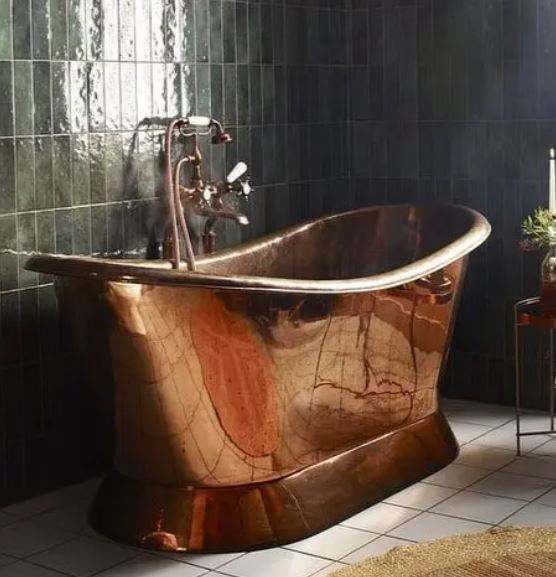 อ่างอาบน้ำทองแดงแบบตั้งพื้นพร้อมขาตั้งทรงกรงเล็บ อุปกรณ์ตกแต่งห้องน้ำสำหรับวิลล่าหรู