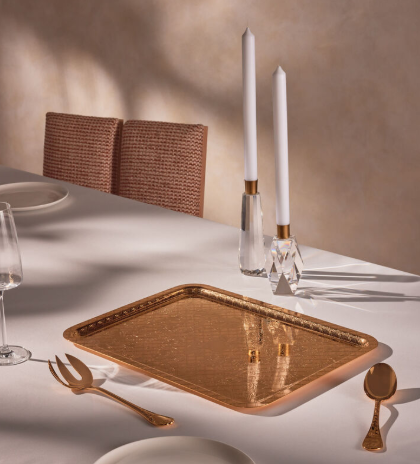 ถาดผลไม้ทองแดงถาดเสิร์ฟทองแดงที่ปลอดภัยถาดเสิร์ฟขนมสเตนเลสตกแต่งซ้อนกันได้