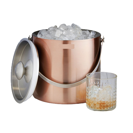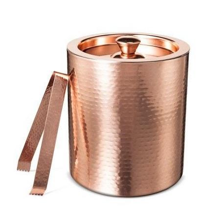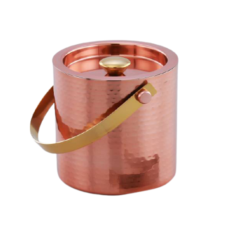 ถังน้ำแข็งทุบทำจากทองแดงพร้อมฝาและที่คีบถังเก็บน้ำแข็งทรงกลมคุณภาพสูงสุดในราคาต่ำสุด