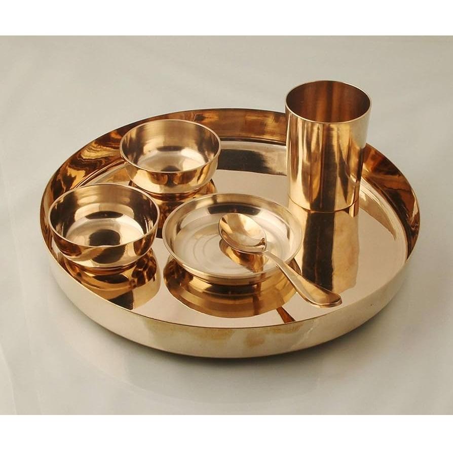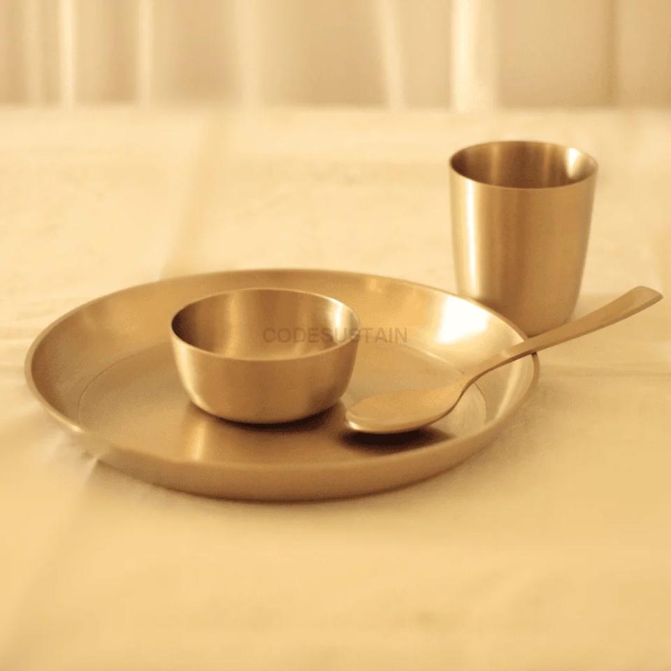 ชุดภาชนะทองแดงแบบดั้งเดิม ชุดถาด ถ้วย แก้ว และช้อน ชุดอาหารทองแดงแบบดั้งเดิม