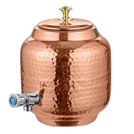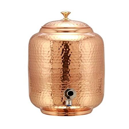 กระติกน้ำทองแดงตีลายพร้อมฝาปิด คุณภาพสูงสุด รูปทรงกลม สำหรับใช้เก็บน้ำอเนกประสงค์