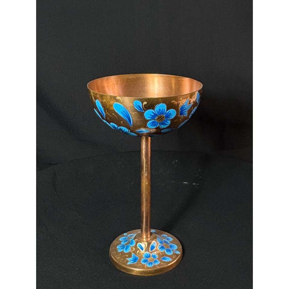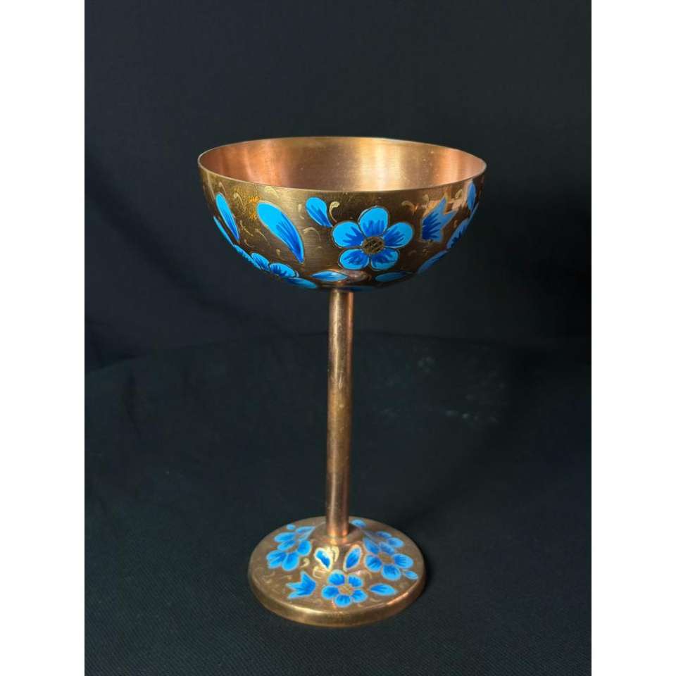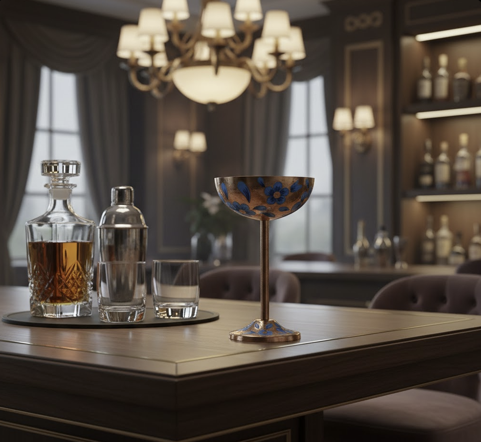 แก้วมาร์ตินี่ทองแดงเพ้นท์ลายด้วยมือ อุปกรณ์บาร์สุดหรู ดีไซน์ดอกไม้สีน้ำเงิน ทำด้วยมือ เหมาะสำหรับใช้ในโรงแรมและร้านอาหาร