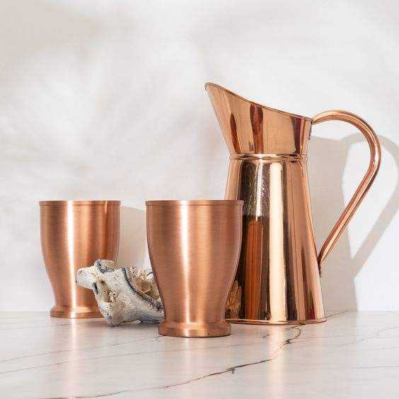 เหยือกทองแดงพร้อมแว่นตาเครื่องใช้ในงานแต่งงานของขวัญโลหะปริมาณพรีเมียมเหยือกทองแดงออกแบบได้ตามต้องการสไตล์ใหม่