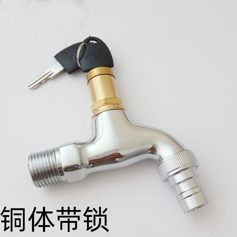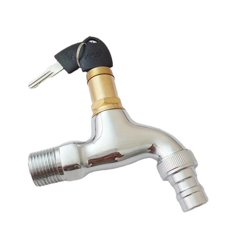 ก๊อกน้ำทองแดงแบบล็อคได้ ขนาด 1/4 นิ้ว ติดผนัง ใช้กุญแจ สไตล์ดั้งเดิม พร้อมตัวล็อค