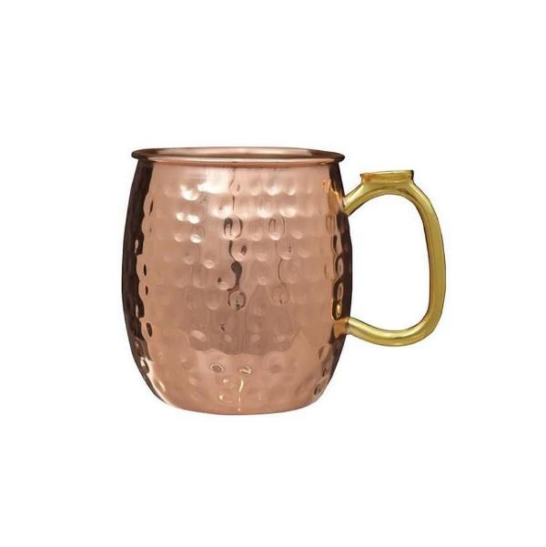 แก้วมักมอสโกทองแดงพร้อมด้ามจับสแตนเลสขัดเงาโรสโกลด์สำหรับเครื่องดื่มเย็นดื่มเบียร์ใช้ตกแต่งบ้านในโรงแรม