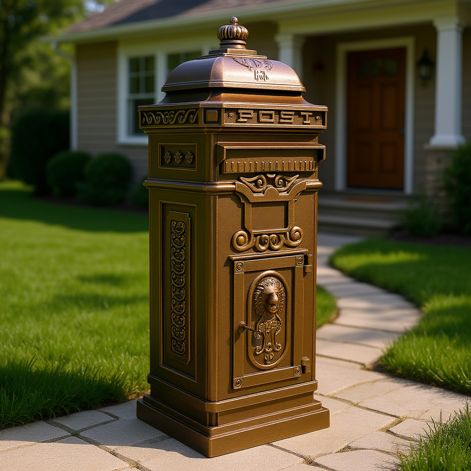 ตู้จดหมายทองแดงติดตั้งบนพื้นกลางแจ้ง ป้องกันฝน สำหรับบ้านพักอาศัย ตกแต่งสวน พร้อมกุญแจล็อค เปิดใช้งานด้านหน้า