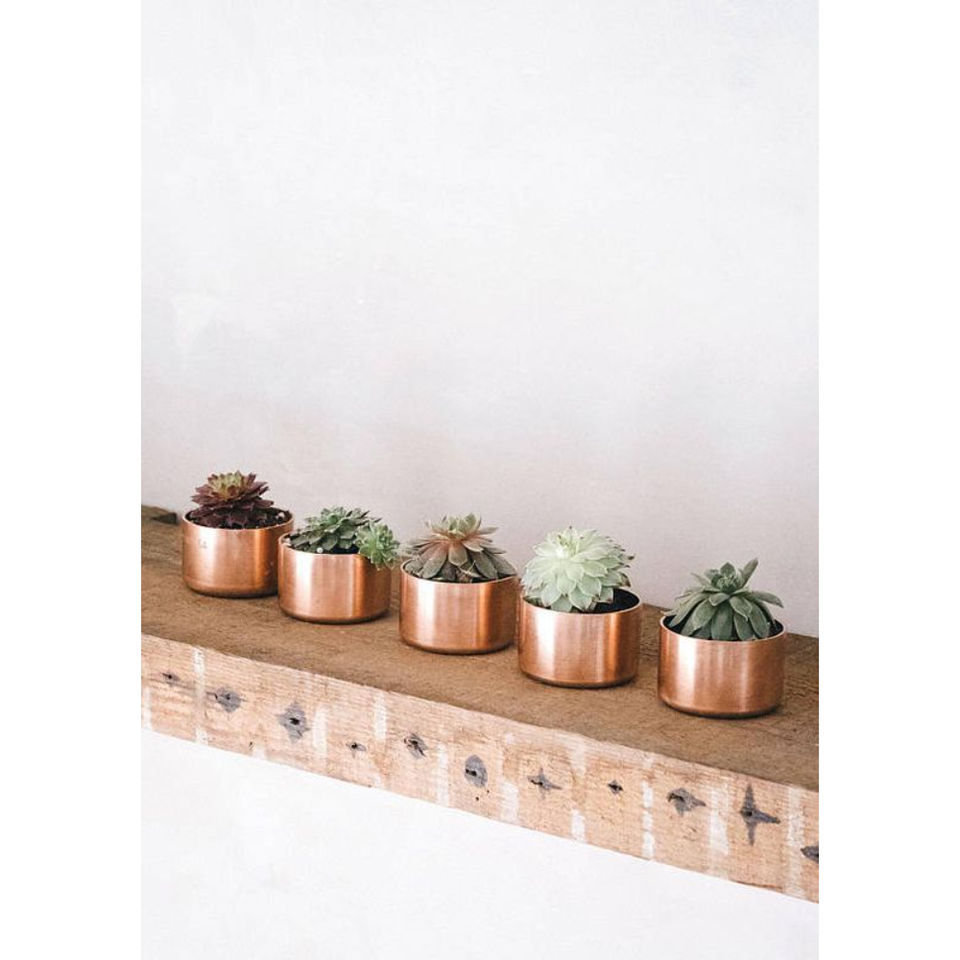 ชุดเครื่องปลูกทองแดง 2 ชิ้นพร้อมขาตั้งสีดําคอนเทนเนอร์พืชทองแดงรูปทรงที่กําหนดเองในราคาสมเหตุสมผลโดยโลกโลหะอินเดีย