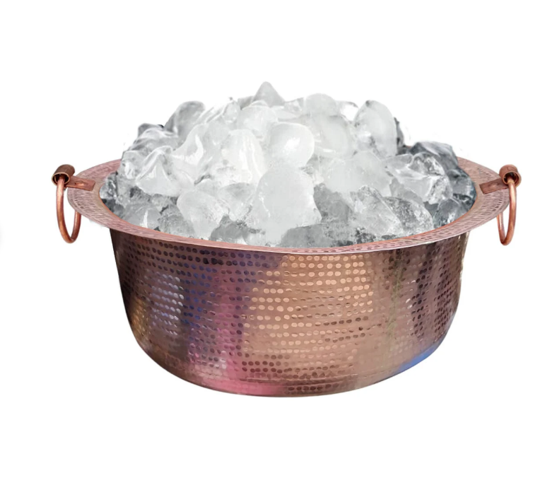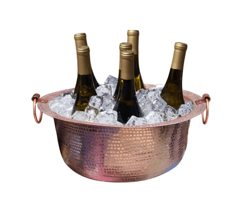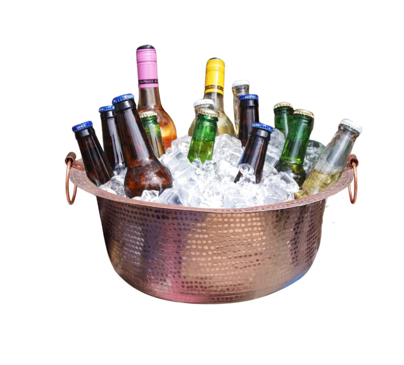 ถังแช่แชมเปญโลหะชุบทองแดงพร้อมหูจับ ถังน้ำแข็งสำหรับเครื่องดื่ม ตู้แช่ไวน์ อุปกรณ์บาร์หรูหรา และอุปกรณ์ปาร์ตี้ ตู้แช่ไวน์และเบียร์