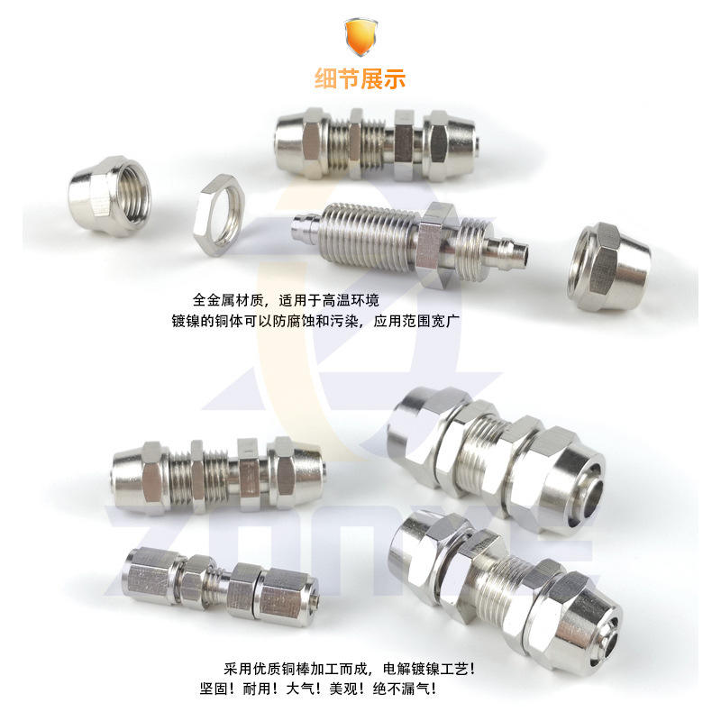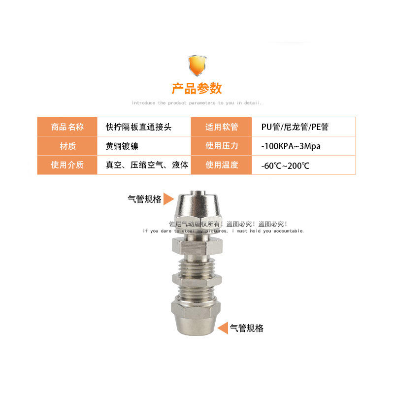 ข้อต่อลมแบบเร็วเชื่อมต่อทองแดง PM4 6 8 10 12 มม. ชุบนิกเกิล แบบตรง ข้อต่อท่อลมตัวเมีย