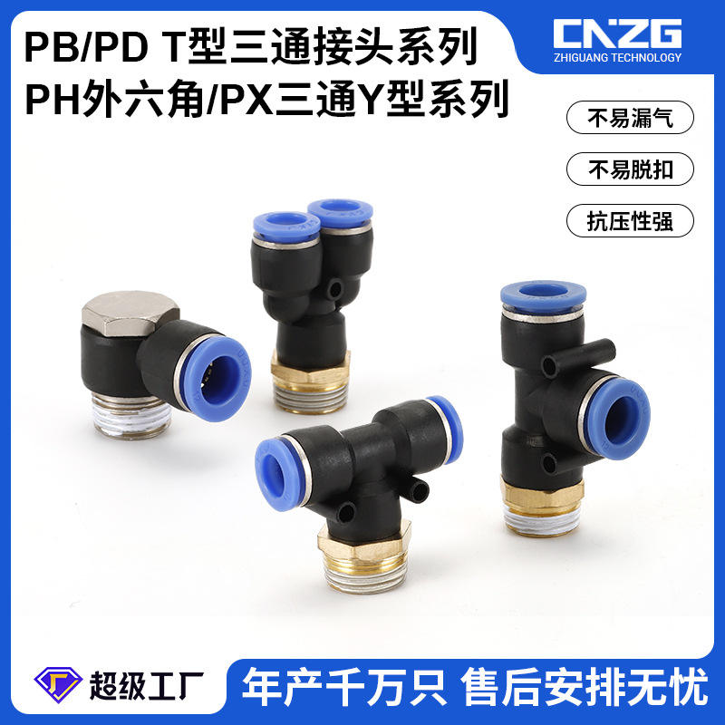Copper Pneumatic Quick-Connect Couplings PB PD PH PX Tee Y-Type External Thread Air Fittings