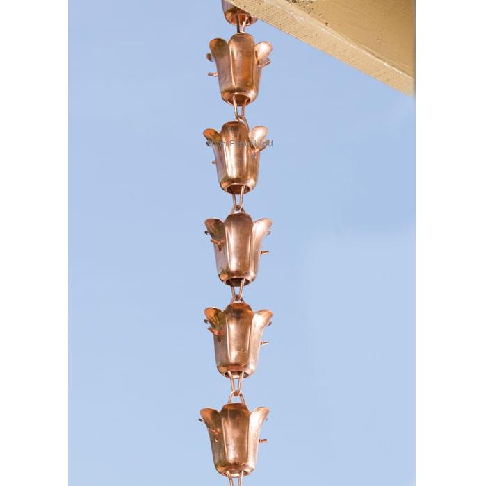 ห่วงโซ่ฝนทองแดงสุดหรูรางถ้วยโลหะแขวนตกแต่งบ้านและสวน