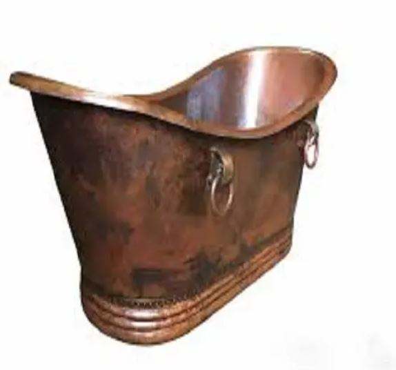 อ่างอาบน้ำทองแดงสีชมพูแบบสั่งทำพิเศษ รุ่น Double Slipper ฐานเอียง แบบตั้งพื้น ผิวสัมผัสแบบ Patina