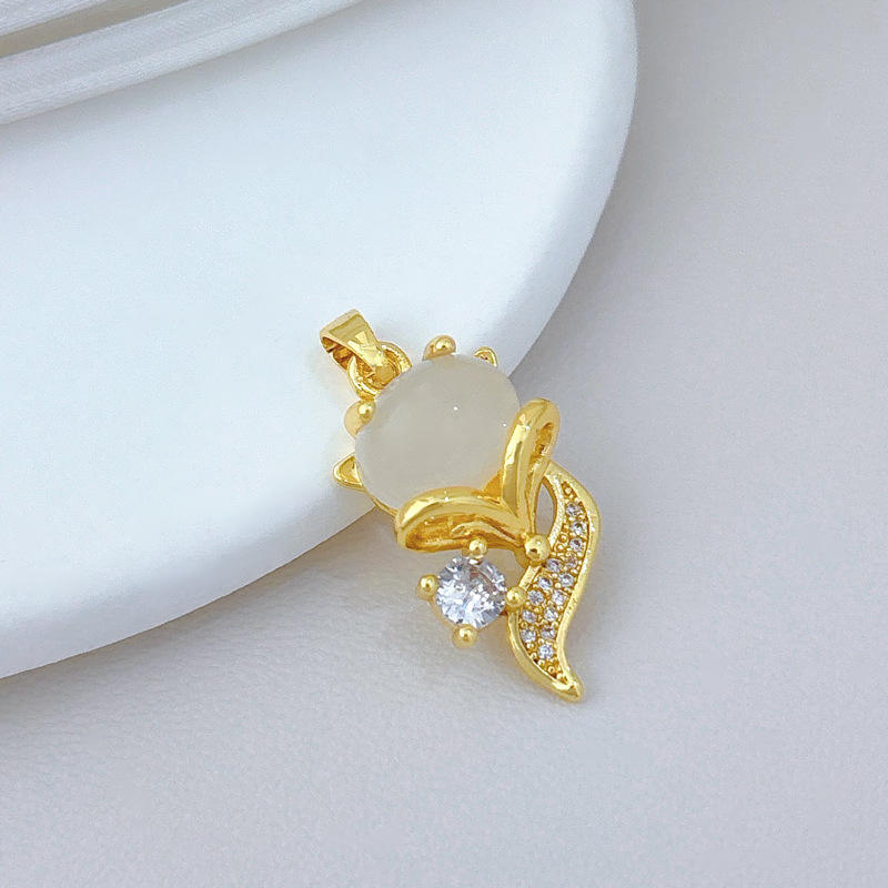 [ทองแดงแท้] ฟอกซ์บริสุทธิ์ บริสุทธิ์และทันสมัย เครื่องประดับทำมือแบบ DIY ข้ามพรมแดน จี้ฝังไมโครเซอร์โคเนียม
