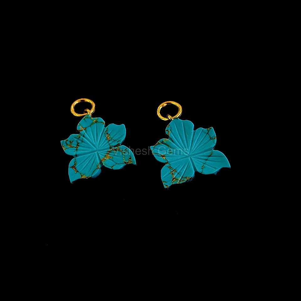จี้พลอยเทอร์ควอยส์รูปดอกไม้ทองแดงสลักจี้อัญมณีหลวม20มม. 925เครื่องรางเงินสเตอร์ลิงสำหรับเครื่องประดับ