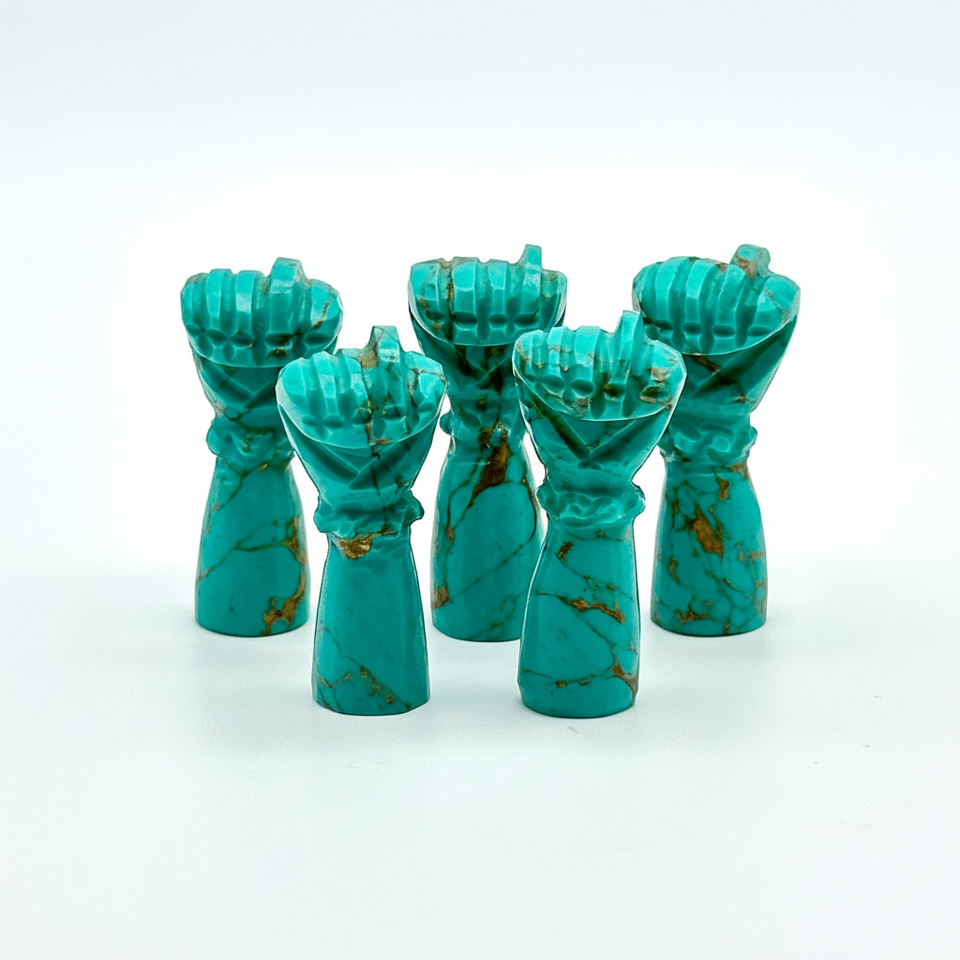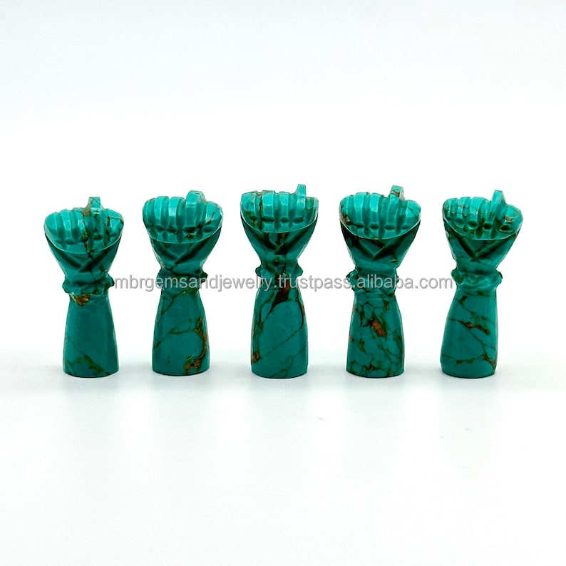 งานแกะสลักรูปมือสีเทอร์ควอยส์ทองแดง-27มม. หินรูปทรงหมัดสีเขียวเทอร์ควอยส์หลวมสำหรับทำเครื่องประดับ