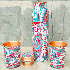 Copper Water Bottle Handmade Round Shape Design 950ml Capacity for Gym/Yoga/Workout CROWN FOODS INDIA