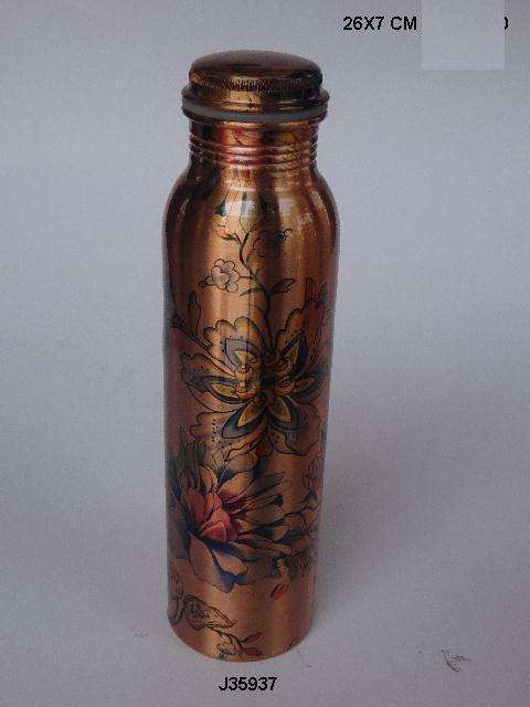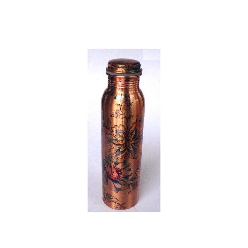ขวดน้ำทำจากทองแดงพร้อมลายดอกไม้ตกแต่งเพื่อประโยชน์ต่อสุขภาพขวดน้ำโยคะขวดน้ำอายุรเวท